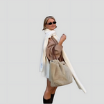 • Contemporary Silhouette: Features an oversized cut that creates graceful movement while maintaining a refined outline.
